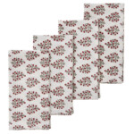 Set od 4 salvete s ručno izrađenim blok tiskom, izrađene od 100% pamuka.Ovakav postupak tiskanja složen je i vremenski zahtjevan.Svaki komad tekstila je jedinstven, stoga su moguće manje razlike u boji i sitne nepravilnosti koje proizvodu daju posebnost. Te jedinstvene karakteristike smatramo šarmantnim obilježjima ručne izrade.