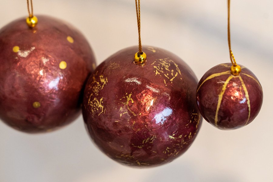 Božićna kuglica 6cm bordo sa zlatnim točkicama