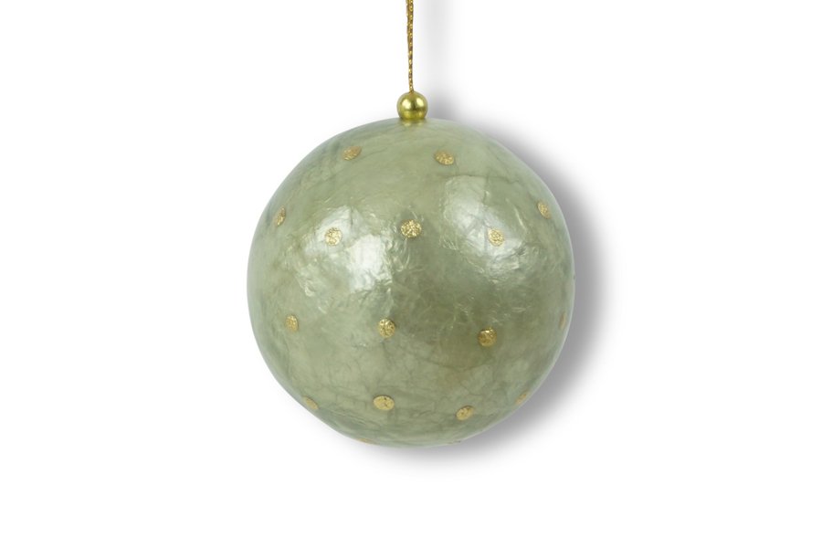 Božićna kuglica 6cm zeleno-siva sa zlatnim točkicama