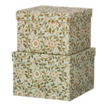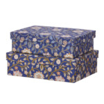 Set od 2 dekorativne kutije za pohranu. Kutije su izrađene od visokokvalitetnog papira što im daje luksuzan i elegantan izgled. Ove svestrane kutije savršene su kao poklon-kutije, za organizaciju uredskog pribora ili za pohranu igračaka u dječjoj sobi. Papir od kojeg su izrađene na bazi je pamuka I jači je od običnog papira, što kutije čini izdržljivijima tijekom vremena u usporedbi s klasičnim papirnatim kutijama.